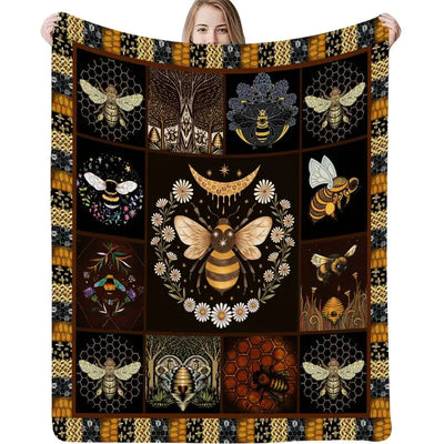 Vintage Bee Pattern Flannel Throw Blanket (1pc)